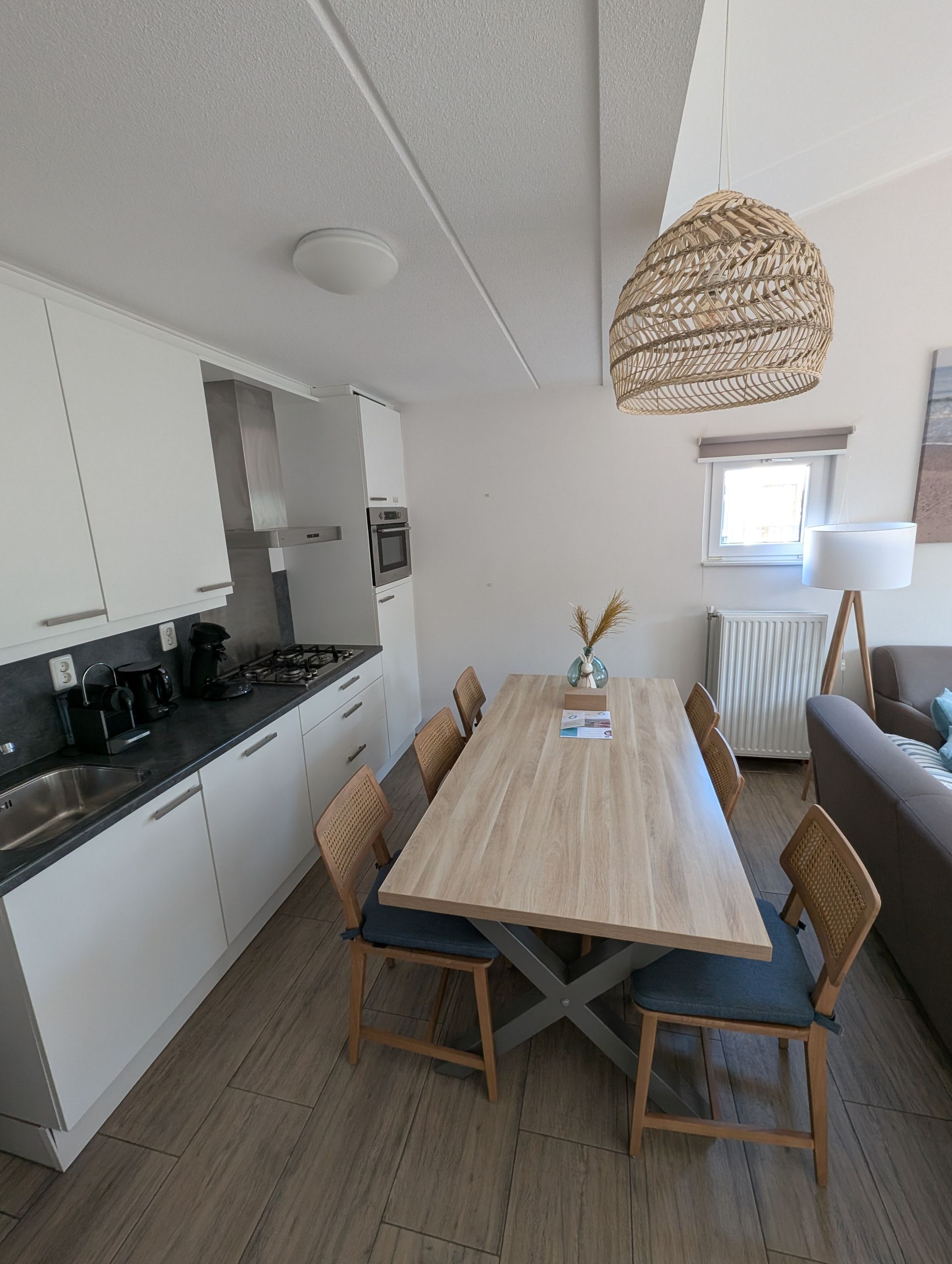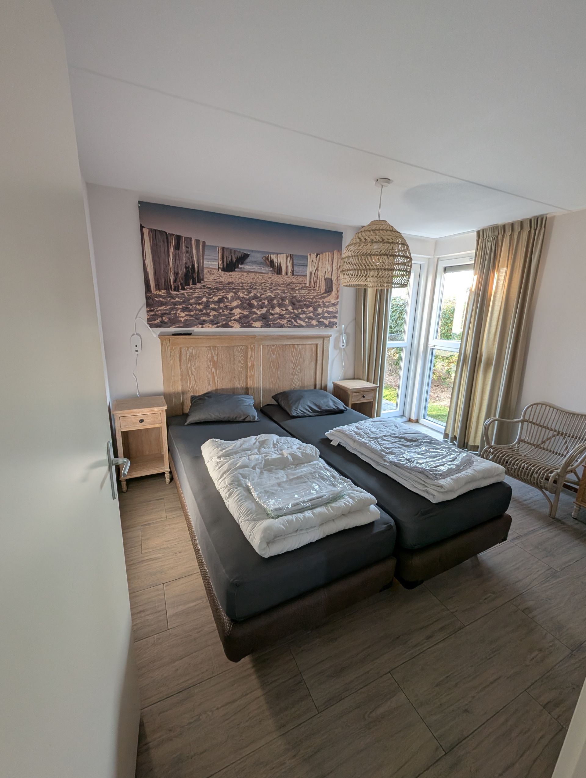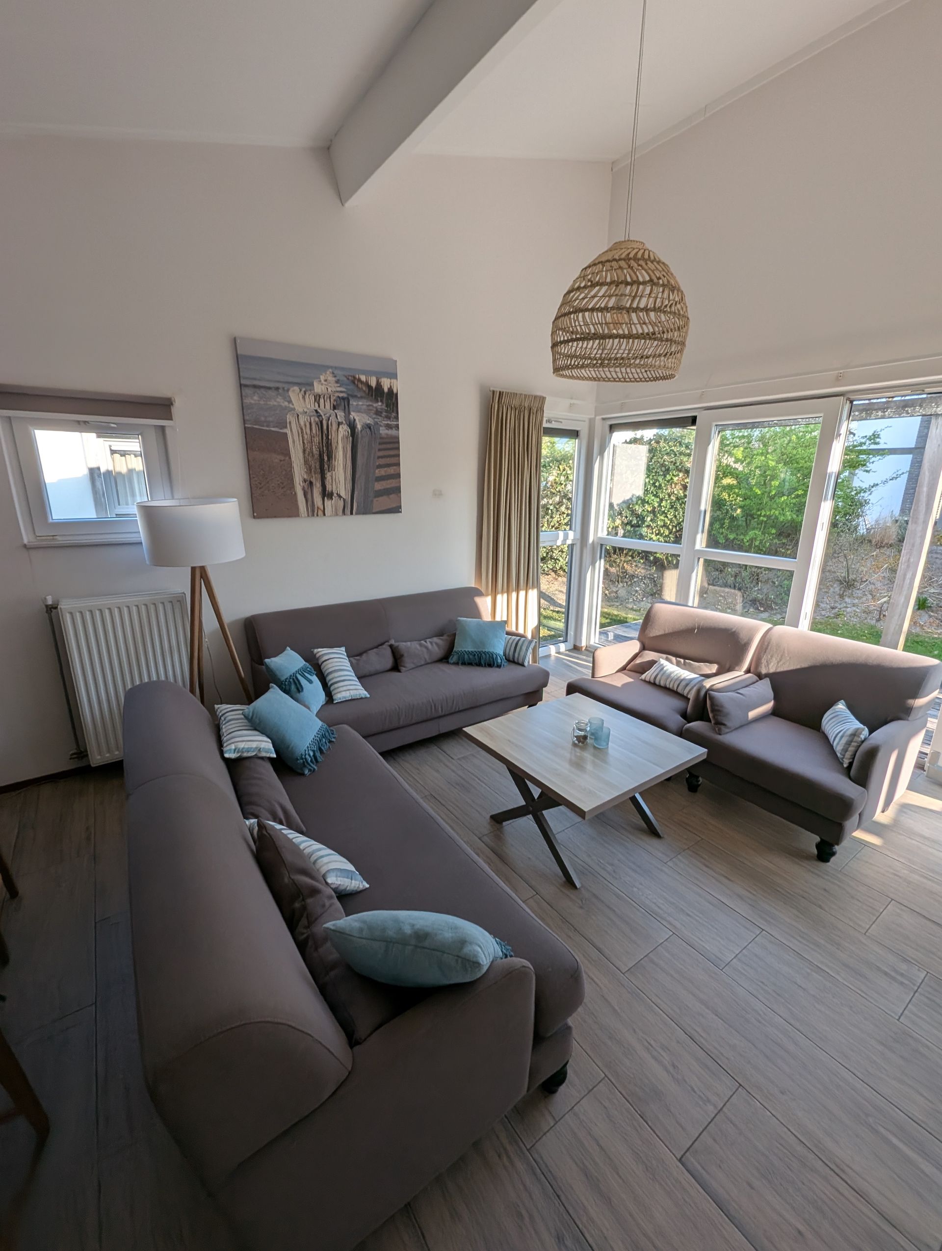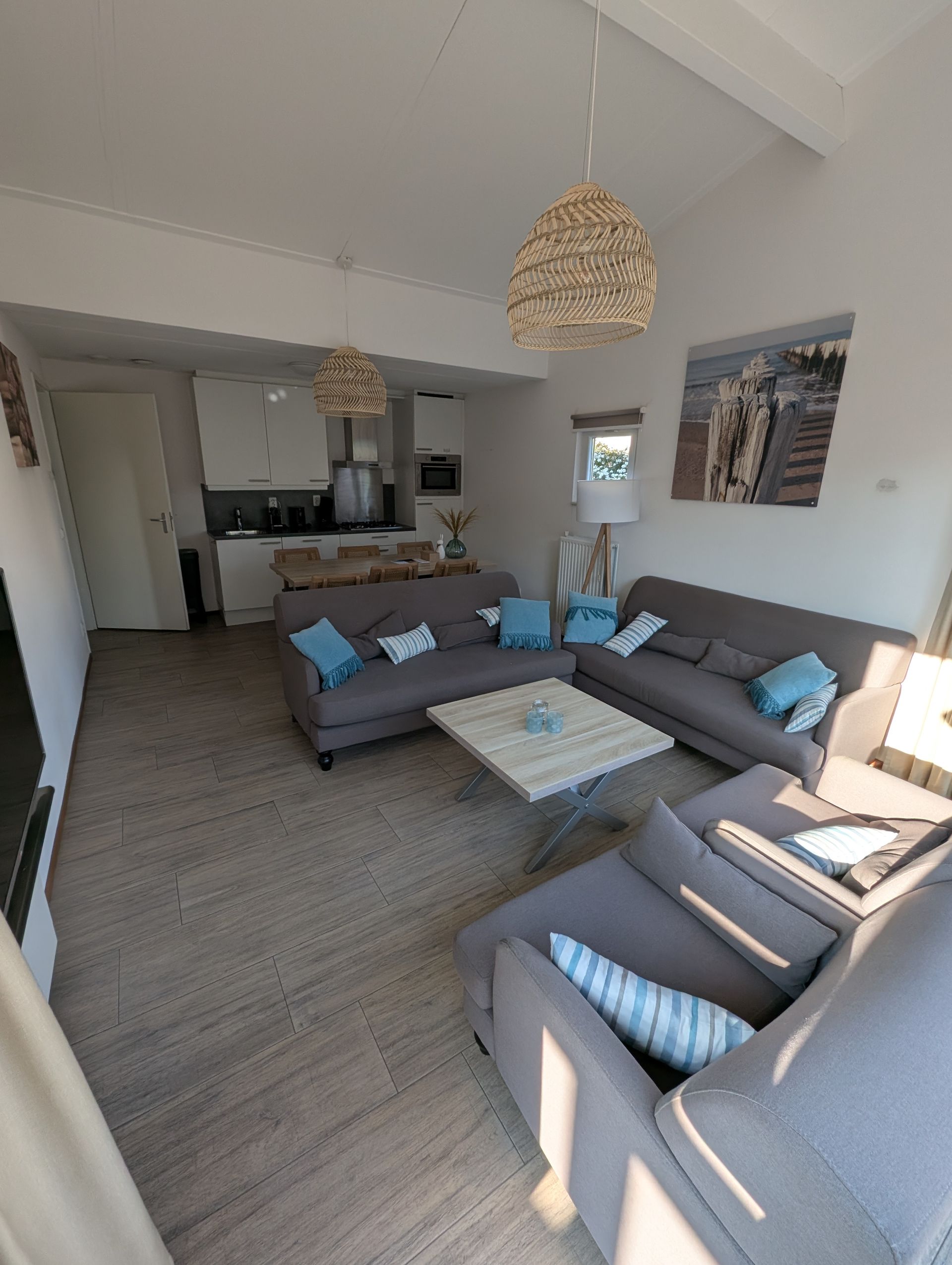 Dieser freistehende Bungalow eignet sich für 6 Personen. Das Wohnzimmer bietet Fußbodenheizung, Smart-TV und Soundbar. Die Küche ist u. a. mit Geschirrspüler und Kaffeekapselmaschine ausgestattet. Außerdem gibt es 3 Schlafzimmer, 2 davon mit je 2 Einzel-Boxspringbetten und ein Schlafzimmer mit Etagenbett. In einem Schlafzimmer befindet sich je ein zusätzliches TV-Gerät. Darüber hinaus finden Sie zwei Badezimmer, ein separates Gäste-WC im Flur und im Außenbereich eine möblierte Terrasse sowie Parkmöglichkeiten für 2 Autos. Die Nutzung von WiFi ist gratis.
