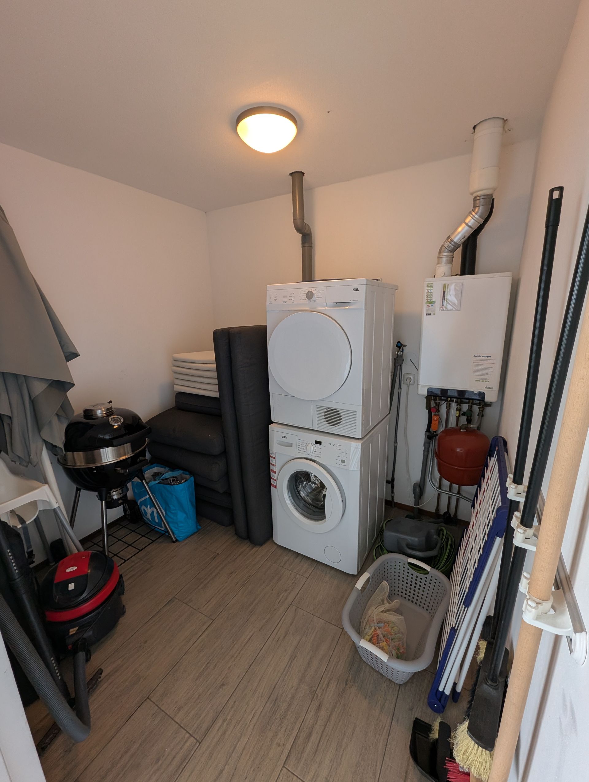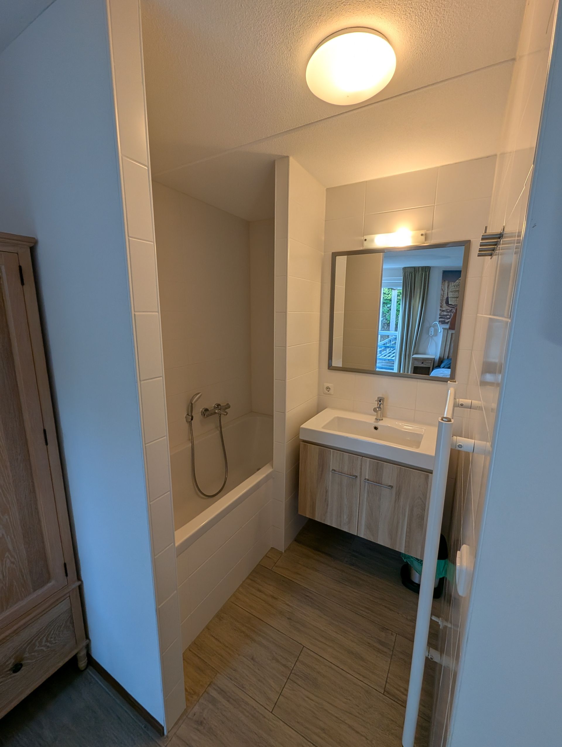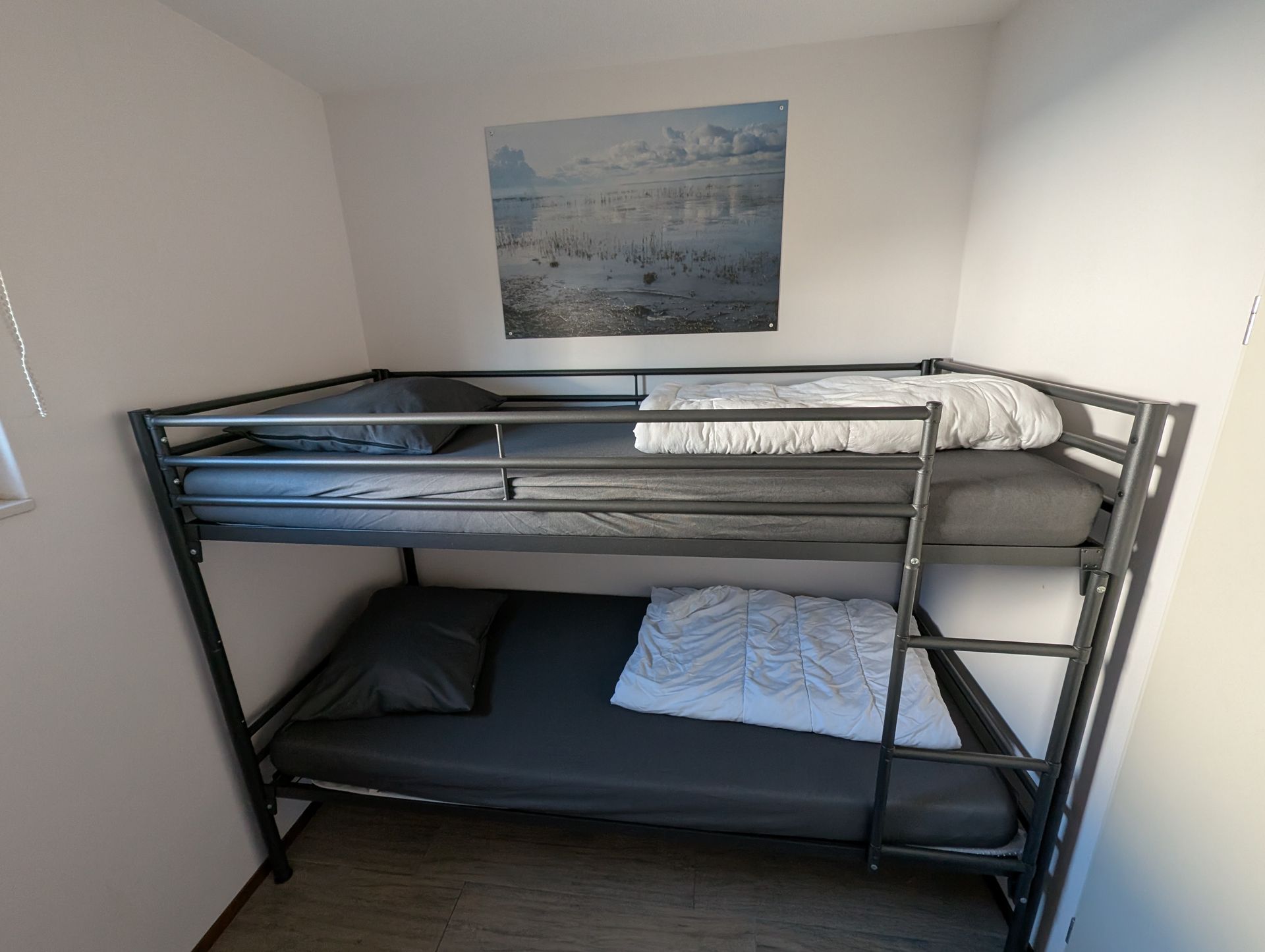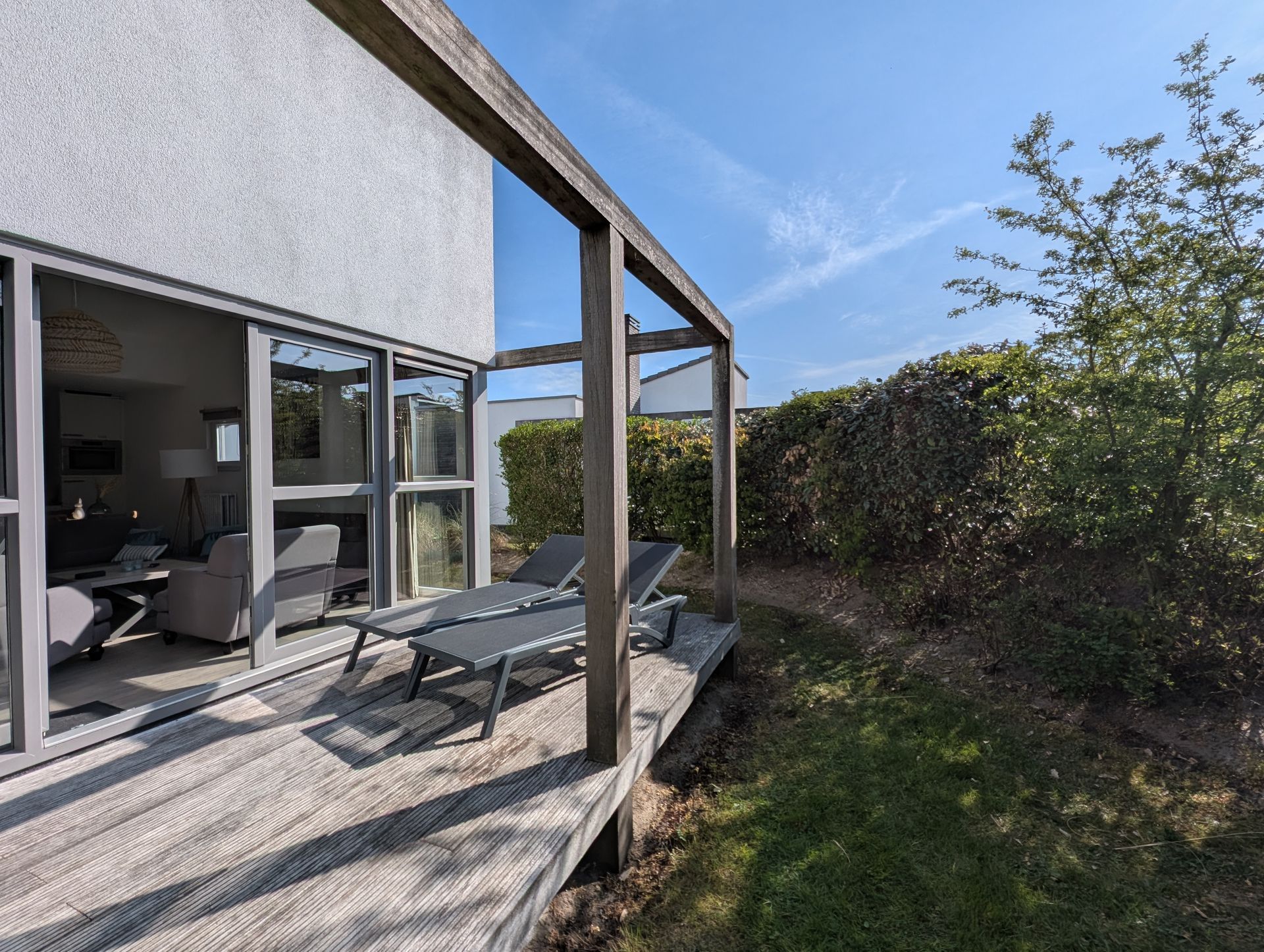 Dieser freistehende Bungalow eignet sich für 6 Personen. Das Wohnzimmer bietet Fußbodenheizung, Smart-TV und Soundbar. Die Küche ist u. a. mit Geschirrspüler und Kaffeekapselmaschine ausgestattet. Außerdem gibt es 3 Schlafzimmer, 2 davon mit je 2 Einzel-Boxspringbetten und ein Schlafzimmer mit Etagenbett. In einem Schlafzimmer befindet sich je ein zusätzliches TV-Gerät. Darüber hinaus finden Sie zwei Badezimmer, ein separates Gäste-WC im Flur und im Außenbereich eine möblierte Terrasse sowie Parkmöglichkeiten für 2 Autos. Die Nutzung von WiFi ist gratis.